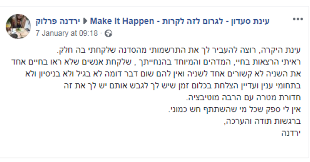 זה עובד ! מעבר לזה, הקורס גם עזר לי ברמה האישית- הוא שינה לי את צורת המחשבה