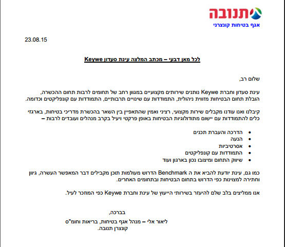 לשאלות ובדיקת התאמה ניתן ליצור קשר בדוא"ל ל keywe.training@gmail.com או בטלפון 052-5333195
