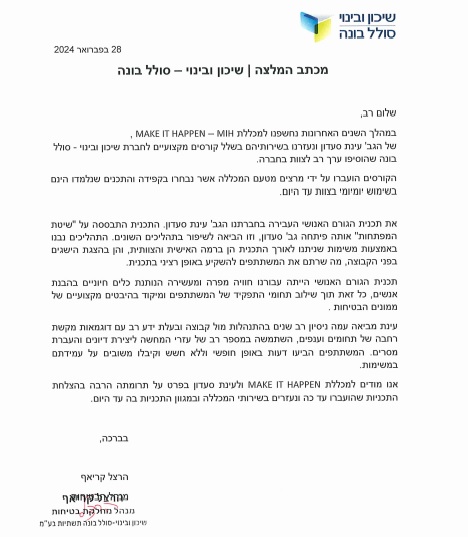 "למדתי לראות את האדם מאחורי העובד ויצאתי עם כלים שמשמשים אותי גם בעבודה וגם בבית"